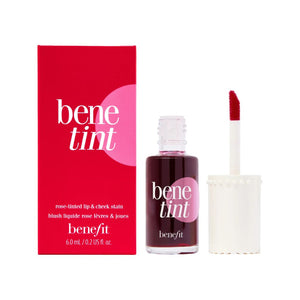 Benefit Benetint është një tint (ngjyrues) i lëngshëm i nuancës rose (trëndafili) që mund të përdoret si blush për faqet dhe si ngjyrues për buzët – një produkt shumëfunksional i makeup-it. Kjo nunacë qëndrueshmëri të gjatë kanë formula që nuk thahen dhe aplikohen lehtësisht dhe ndihen rehat në buzë dhe faqe. Aplikoni një shtresë me aplikuesin preciz për një nuancë të hollë ose një shtresë për një ngjyrë më të gjallë që zgjat gjithë ditën. Formula është gjithashtu e pandryshueshme ndaj njollave, transferimit.